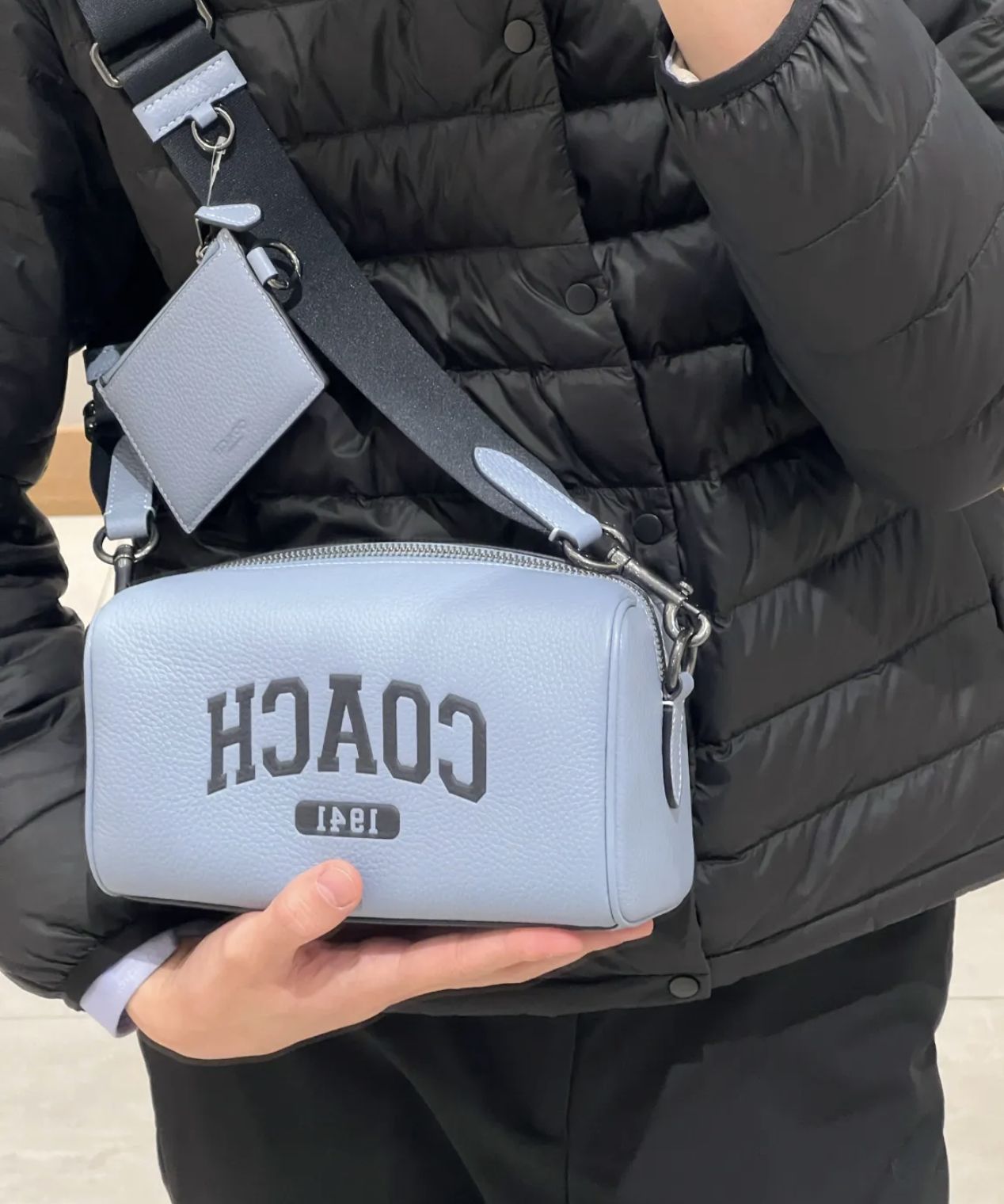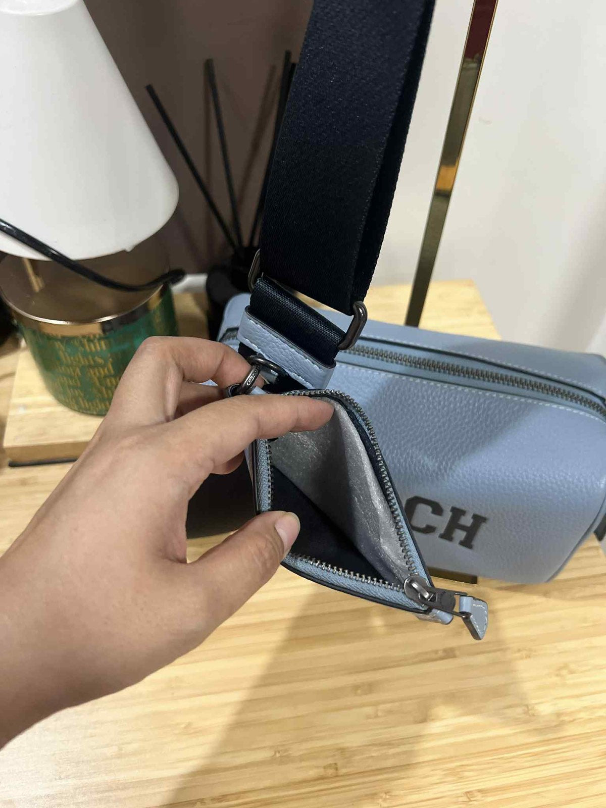 ORIG Preloved COACH Axel Crossbody With Varsity with small wallet Blue Men Bag