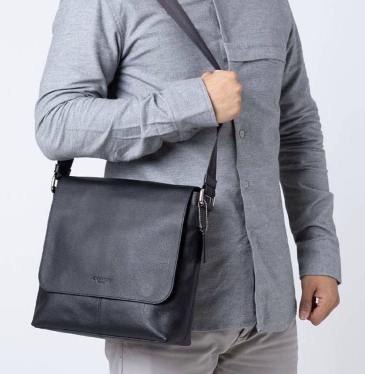 ORIG Preloved COACH Charles Messenger Blue Flap Bag