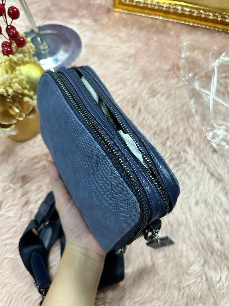 ORIG Preloved Coach Charter Crossbody Bag 19 In Signature Canvas Jacquard Blue