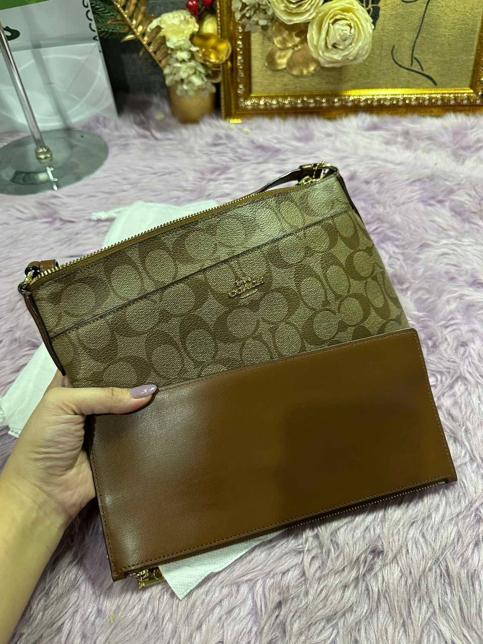 ORIG Preloved Coach East/West Crossbody Small Slim Khaki Brown Bag with Pouch
