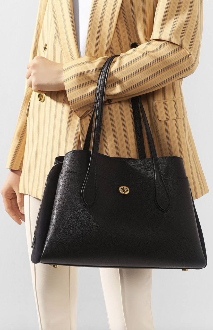 Detachable strap with 21 1/2" drop for shoulder or crossbody wear