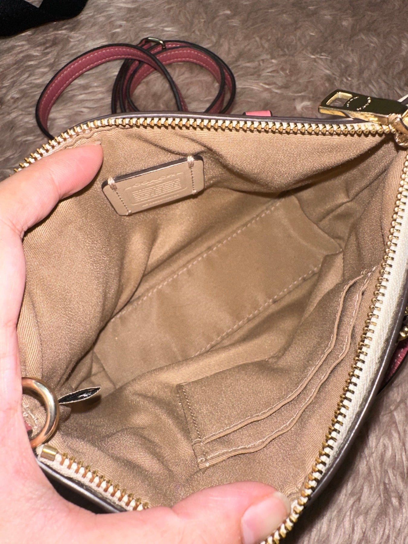 ORIG Preloved COACH Mini Gallery Crossbody With Stripe Heart Print Small White Bag