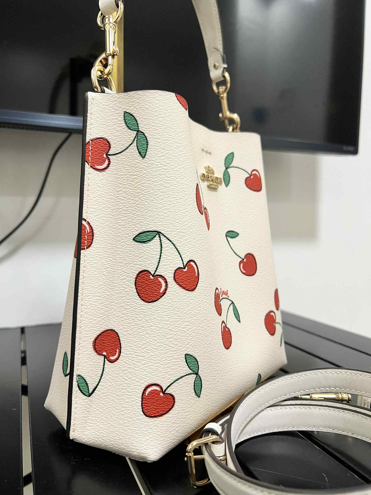 ORIG Preloved Coach Mollie Bucket 22 With Heart Cherry Print Crossbody Bag White