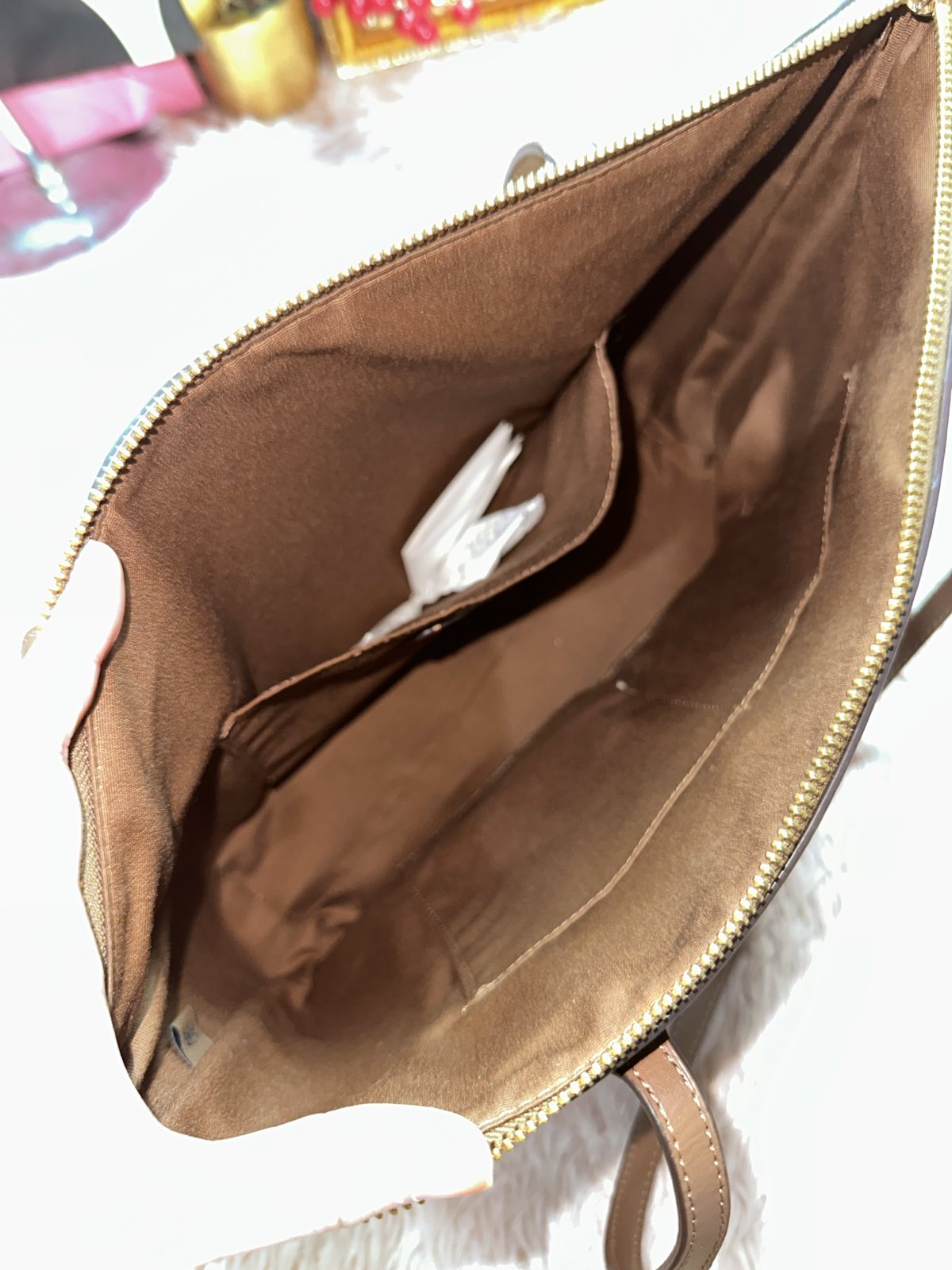 ORIG Preloved Coach Mollie Tote Large Brown/Purple Bag In Signature Canvas