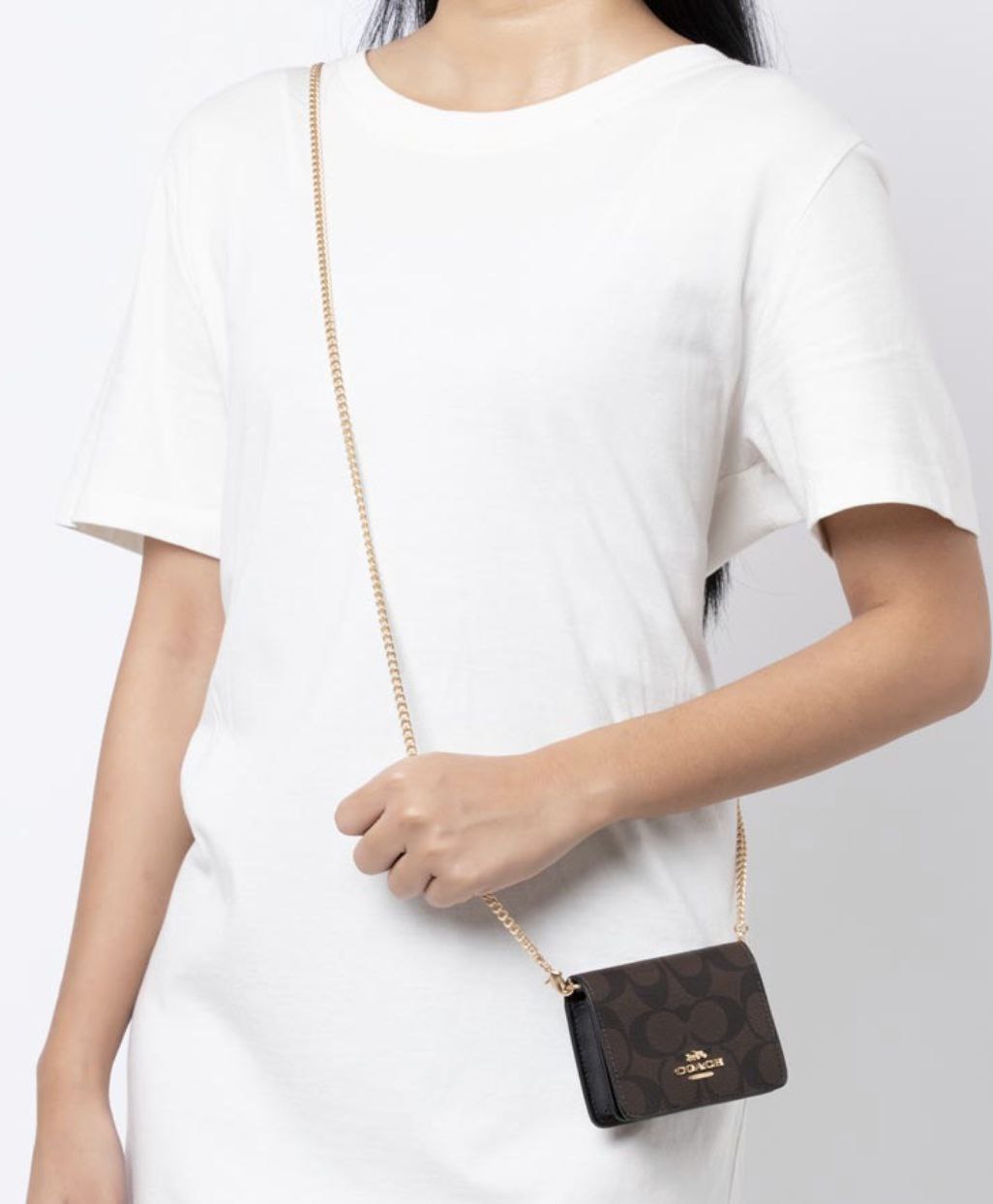 ORIG Preloved COACH MWOC Mini Wallet On A Chain Brown