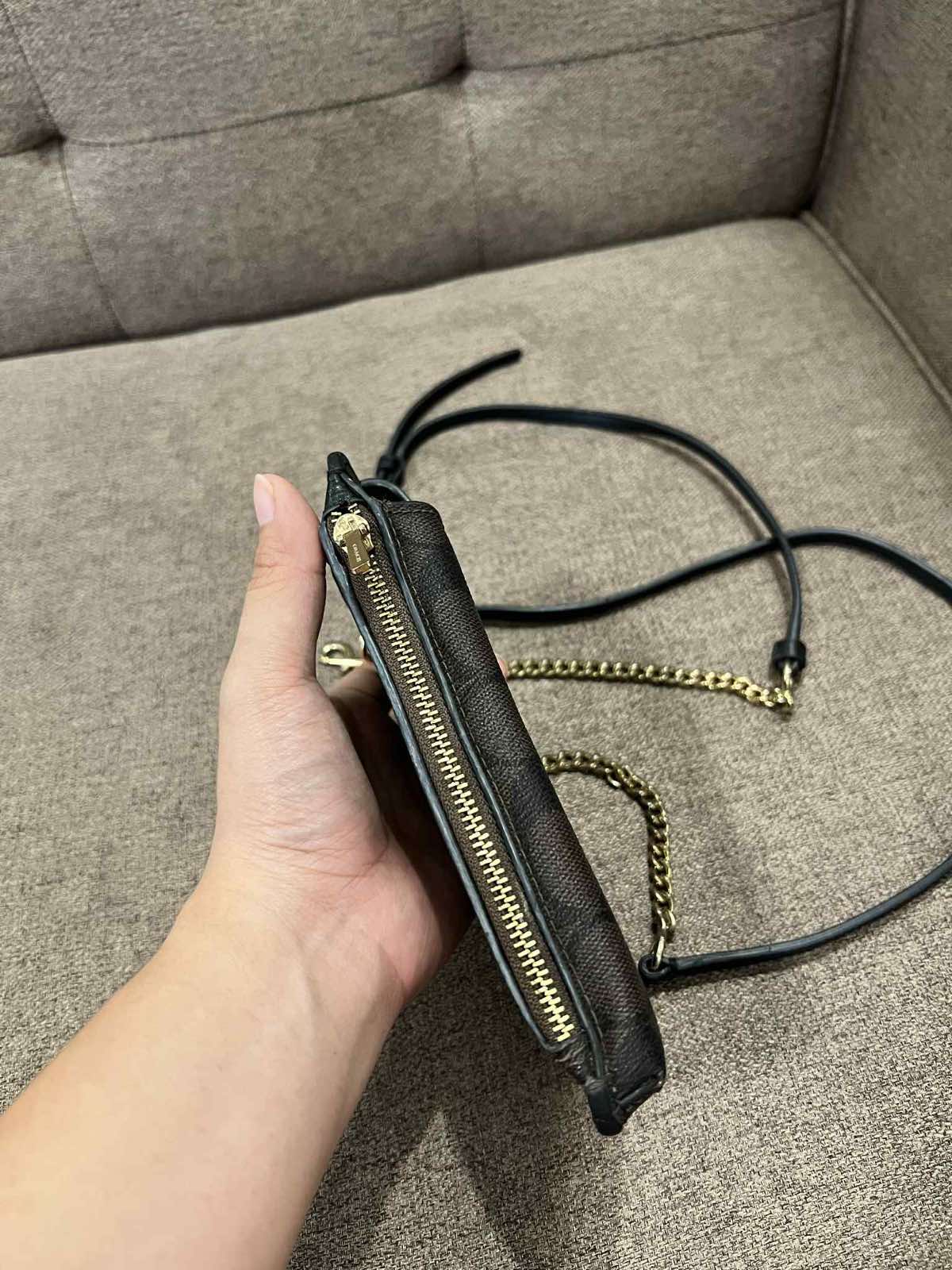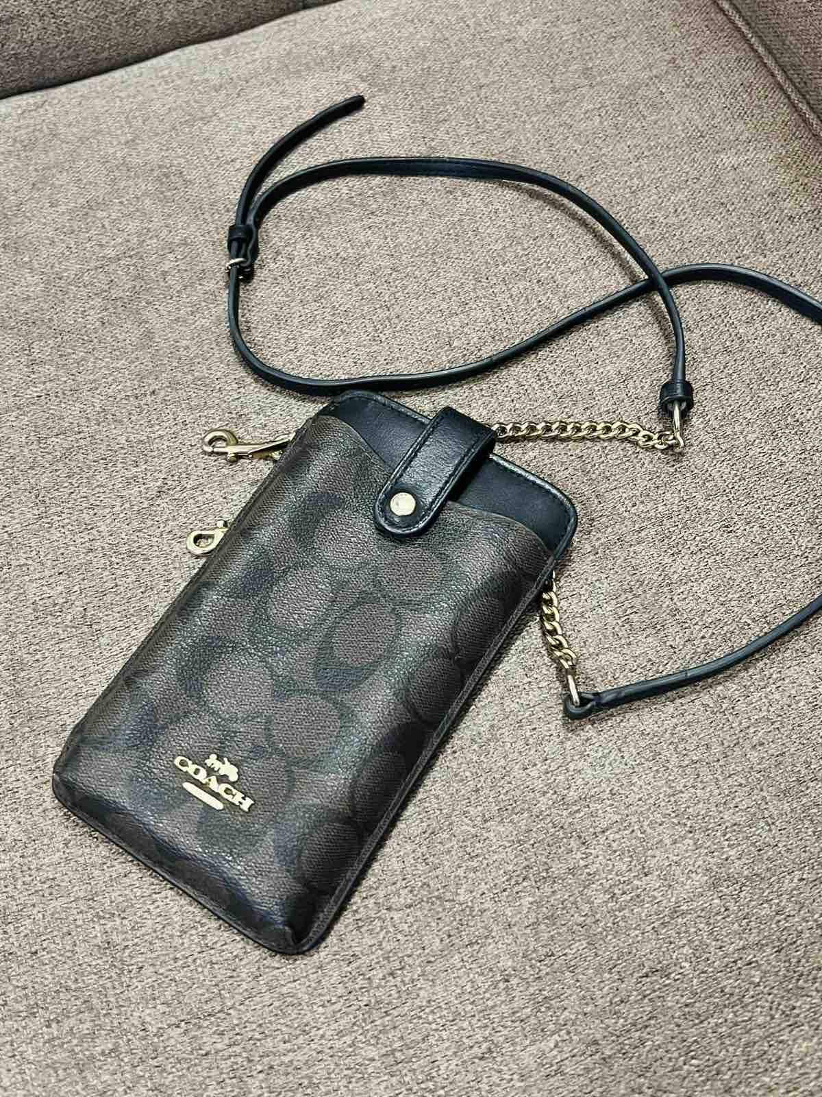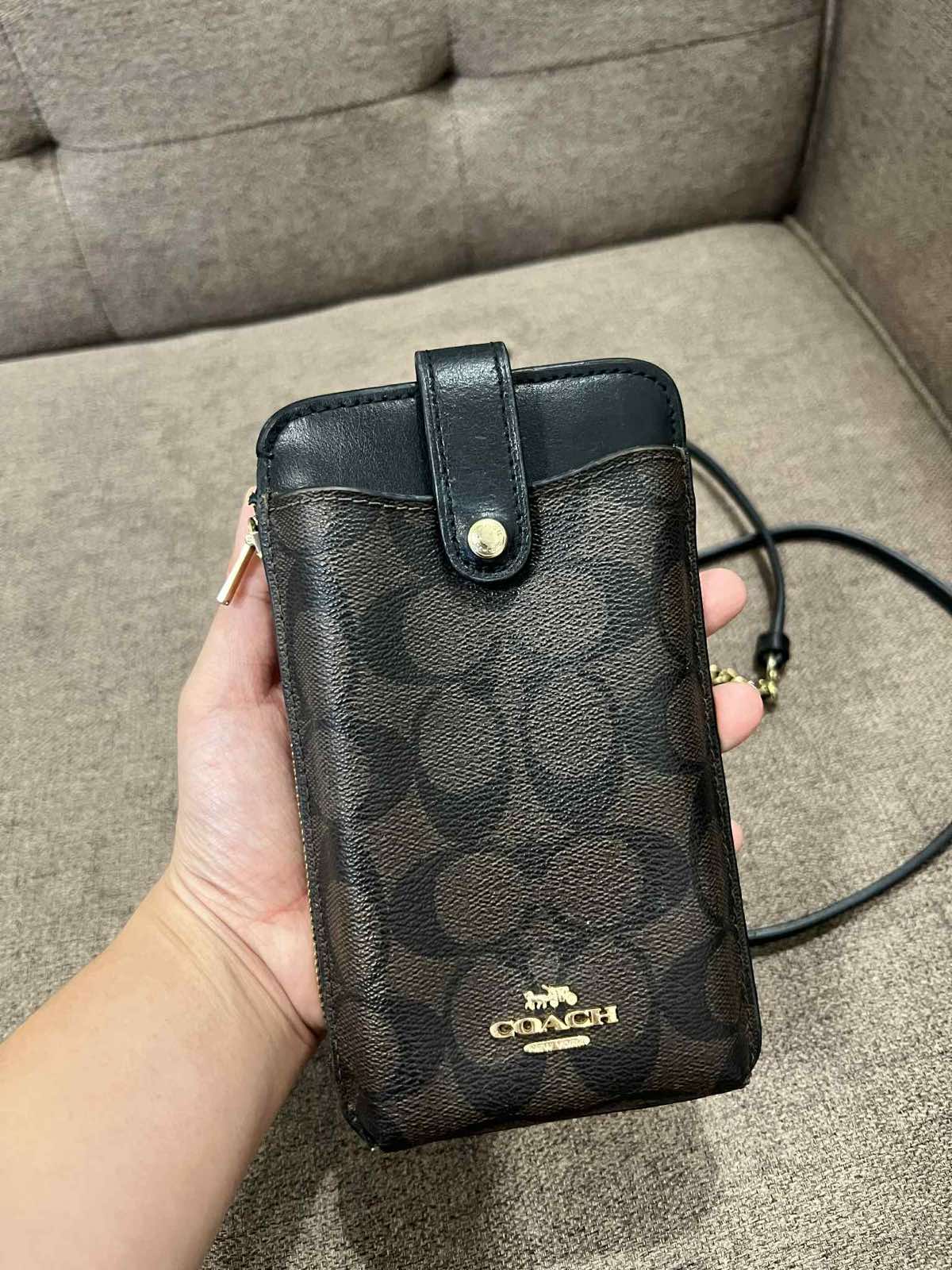 ORIG Preloved Coach Phone Crossbody Brown Bag In Signature Canvas