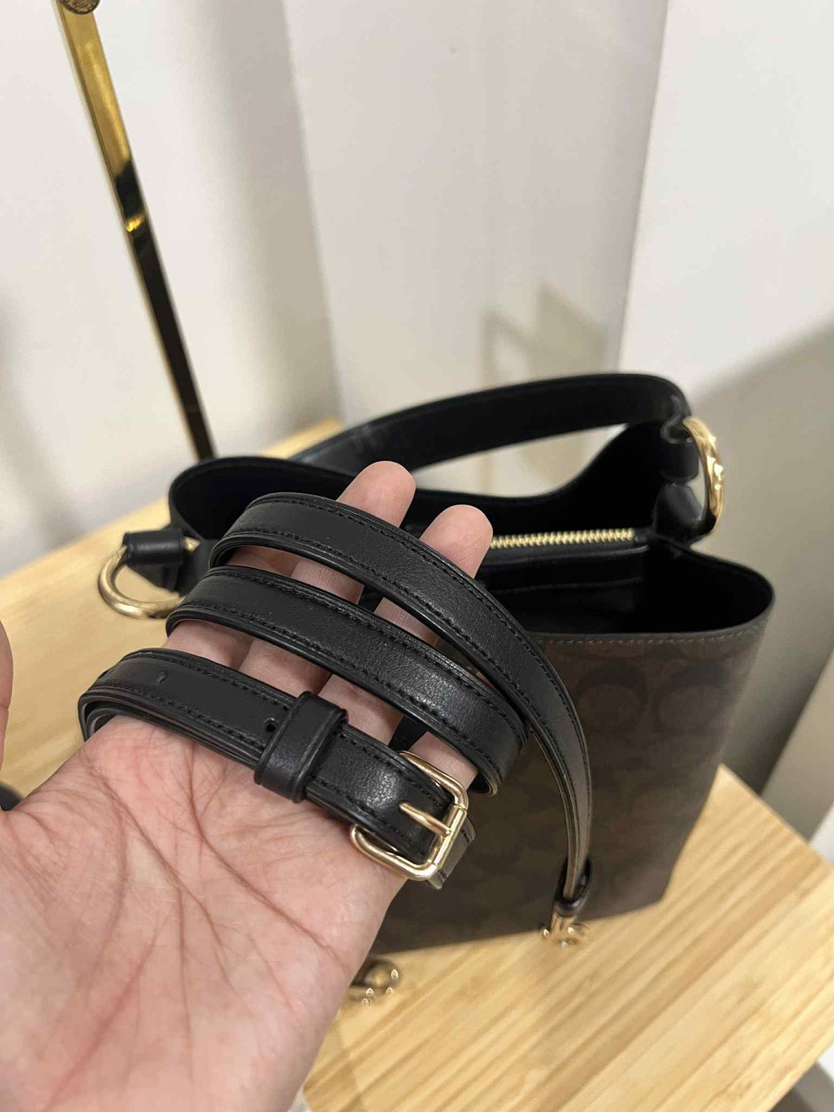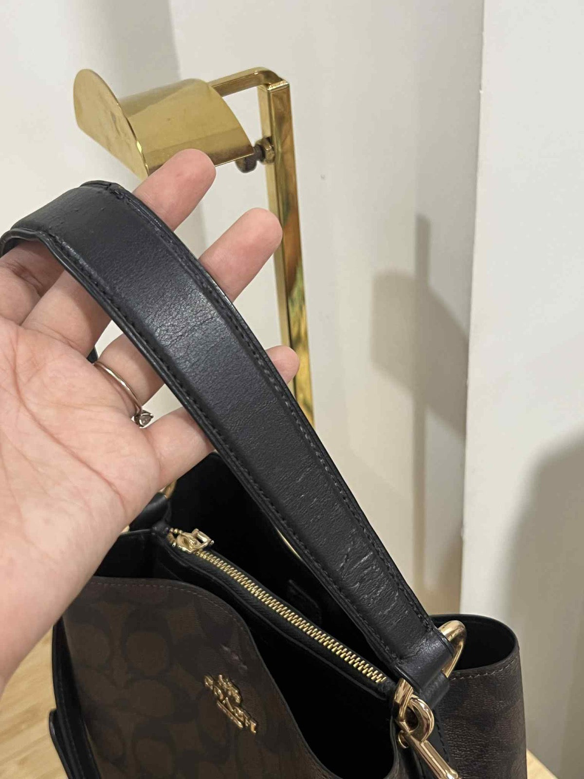 ORIG Preloved Coach Small Town Bucket Bag In Signature Canvas Brown Black