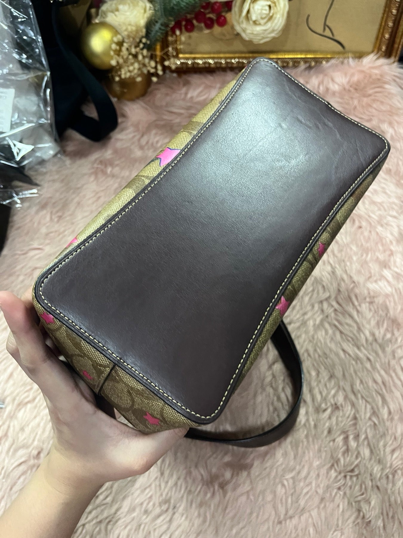 ORIG Preloved COACH Town Bucket Bag In Signature Canvas With Star Print Brown Bag