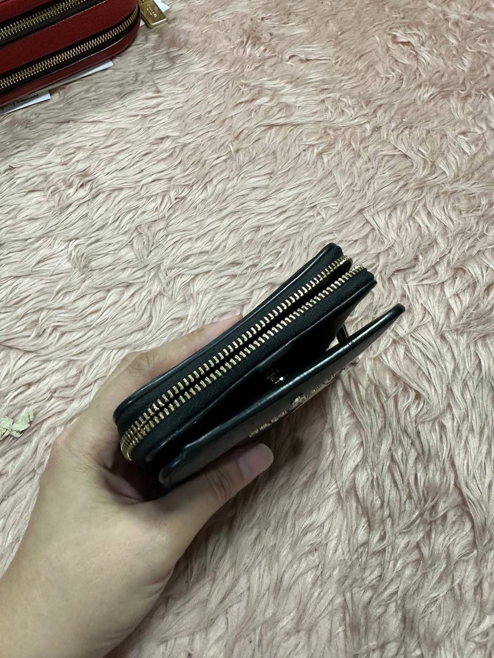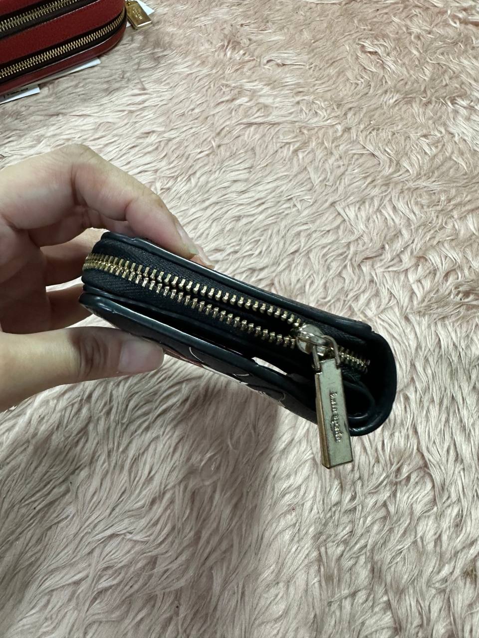 ORIG Preloved Kate Spade KS Minnie Mouse Zip Around Black Small Wallet