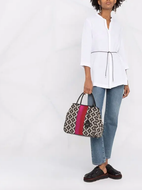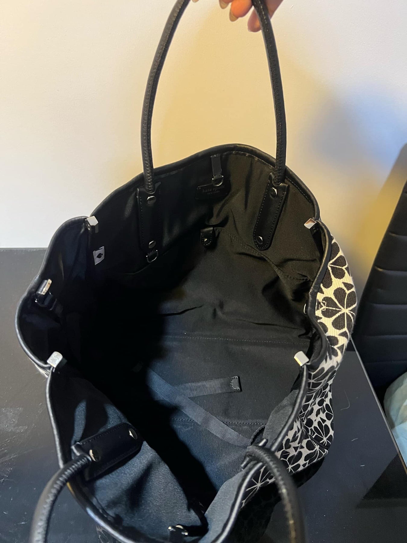 ORIG Preloved KS Retail Spade Flower Jacquard Everything Stripe Medium Tote Pink Black Bag