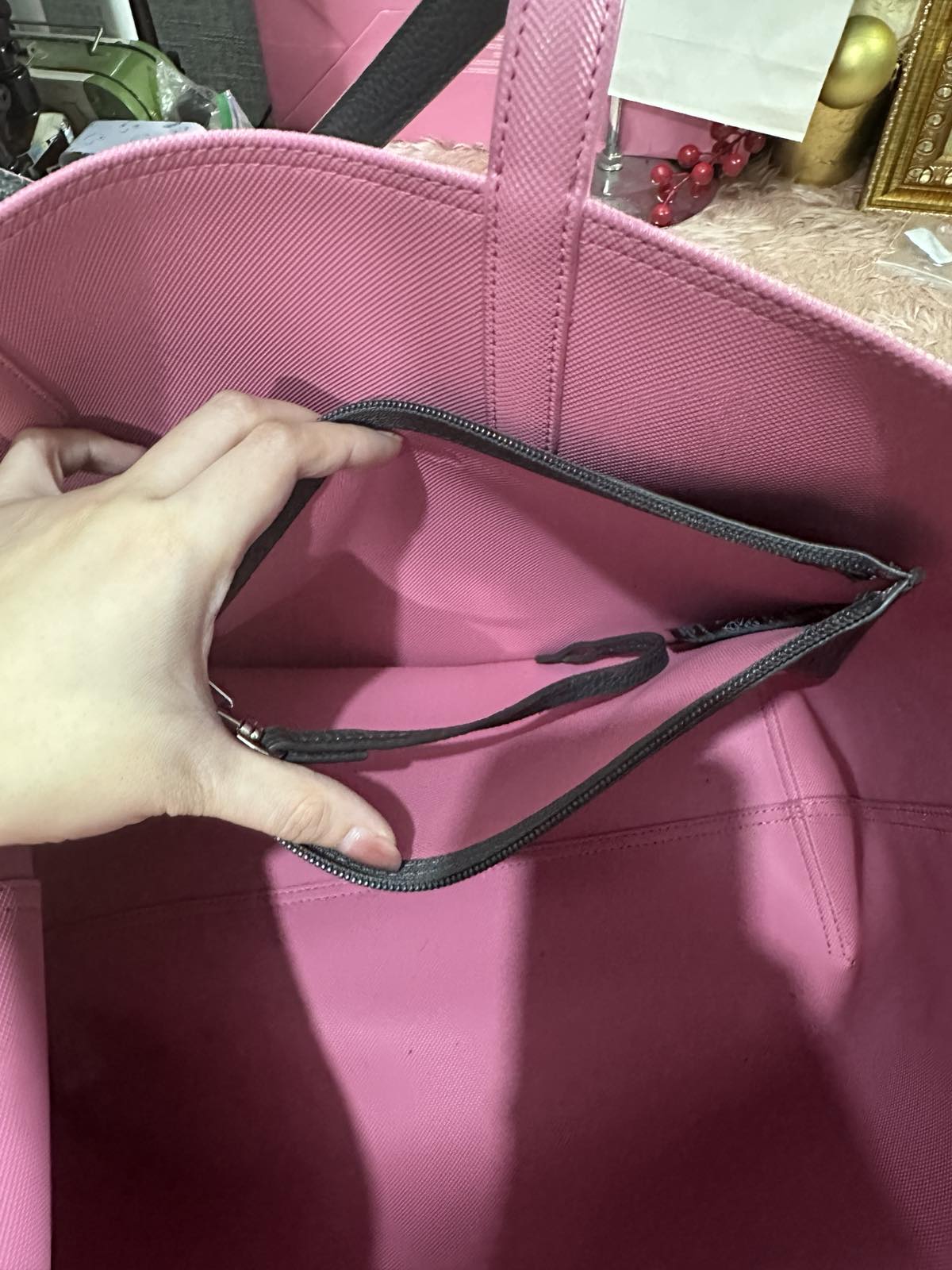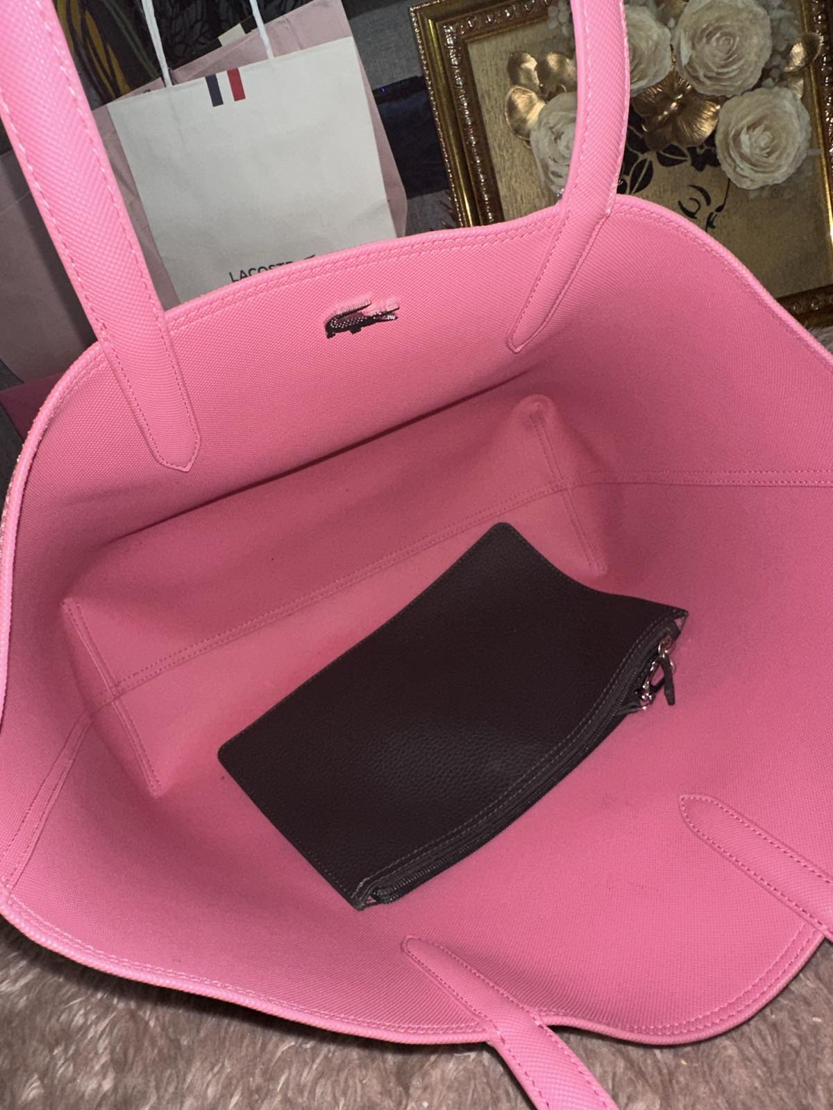 ORIG Preloved Lacoste Anna Reversible Tote Pink/Black Bag with Pouch