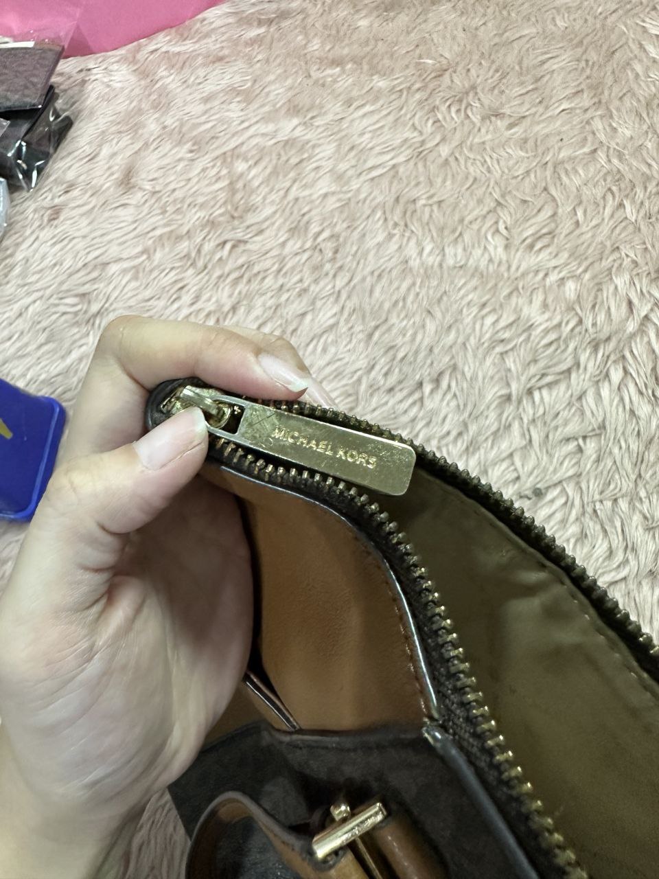 ORIG Preloved Michael Kors MK Charlotte Large Logo and Leather Top-Zip Tote Bag Brown