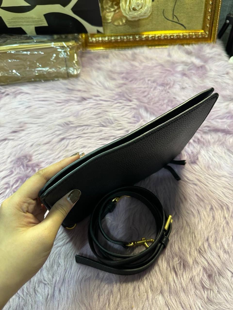 ORIG Preloved Tory Burch TB Double Zip Slim Crossbody Leather Bag BLACK