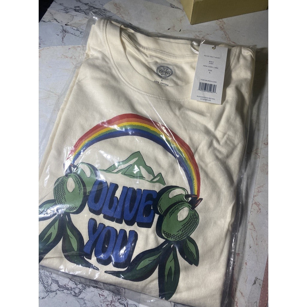 AUTHENTIC/ORIGINAL Tory Burch Retail Olive You T-Shirt in Size Large ONLY